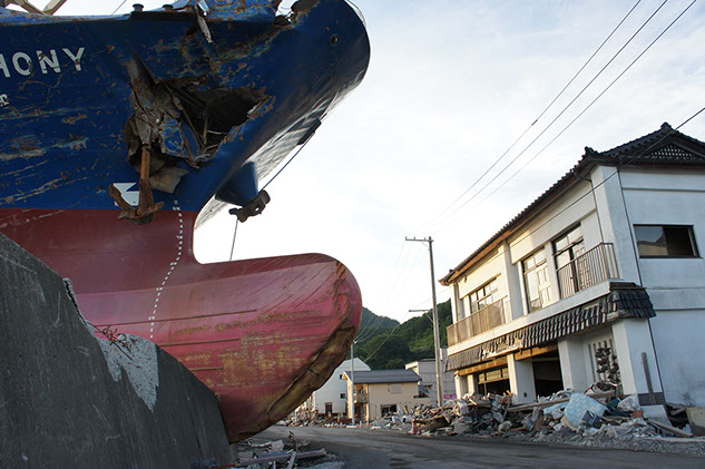 2011.3.11の津波で岸に乗り上げた大型貨物亜鉛アジアンシンフォニー。釜石港。