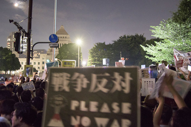 2015年夏。安倍政権の健保解釈変更に抗議する市民達の国会前抗議。