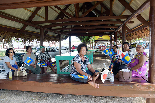 天皇皇后両陛下の到着予定の3時間前から心待ちにするパラオのご婦人達。